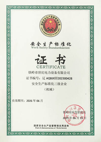 鐵嶺市世紀電力設備有限公司是集科研開發(fā)、生產制造、用戶服務于一體的國家高新技術企業(yè),始建于1999年,位于鐵嶺經濟開發(fā)區,占地面積5萬余平方米,建筑面積2萬余平方米。主要從事國家電網配套戶外高低壓隔離開關、電力電纜、變壓器成套裝置、高低壓開關柜、箱式變電站、絕緣子等產品的研發(fā)、生產和銷售。公司現有國家發(fā)明專利6項、實用新型專利9項,公司通過了ISO9001國際質量管理體系認證、ISO14001環(huán)境管理體系認證和ISO 45001職業(yè)健康安全體系認證。
